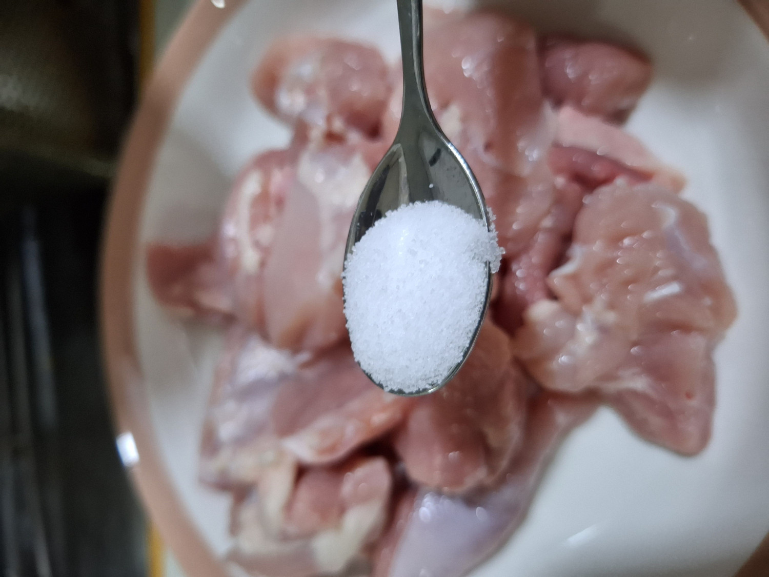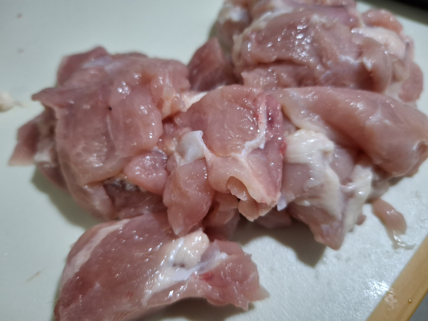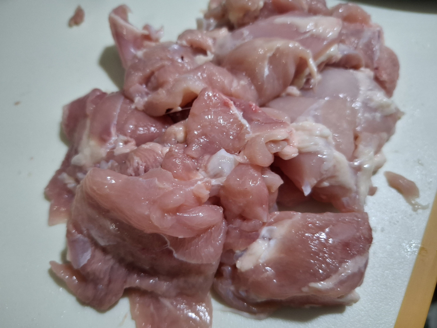 닭고기를 한입크기보다 살짝 크게 깍둑썰어줍니다.