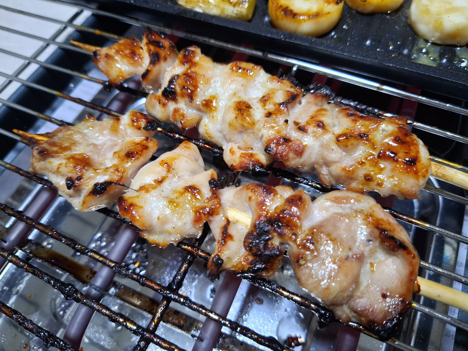 꼬치구이는 시간재지 말고 눈으로 보고 구워주는 게 가장 정확합니다.