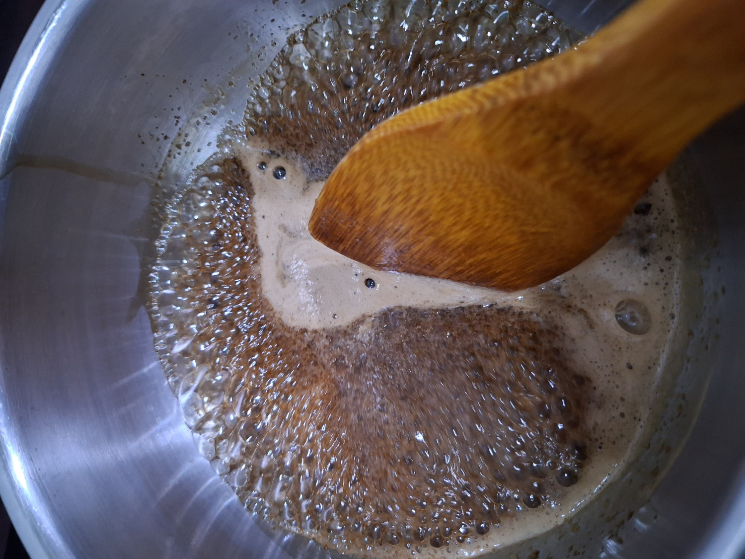 약불로 낮추고 설탕이 완전히 녹을 때까지
