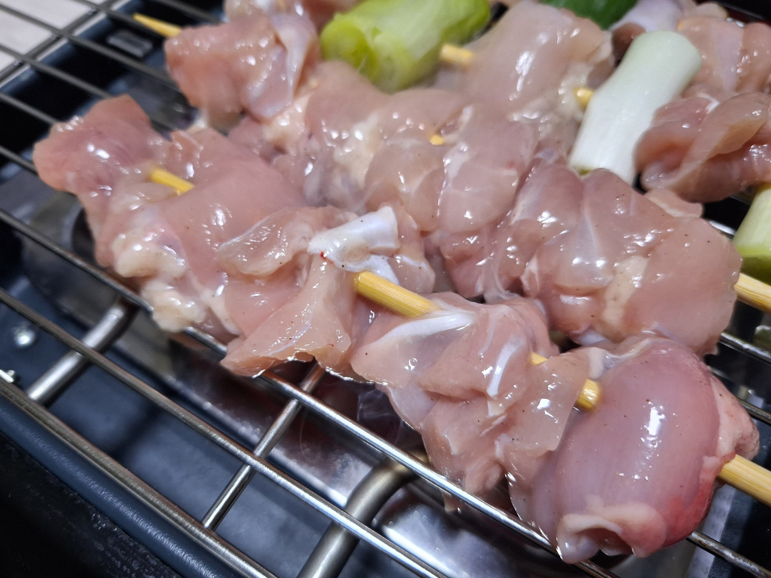 꼬지에 꽂아준 닭꼬치는 중약불에서
