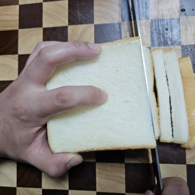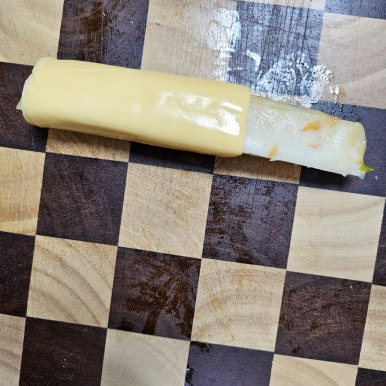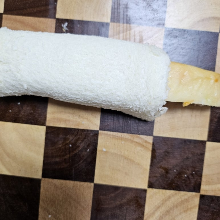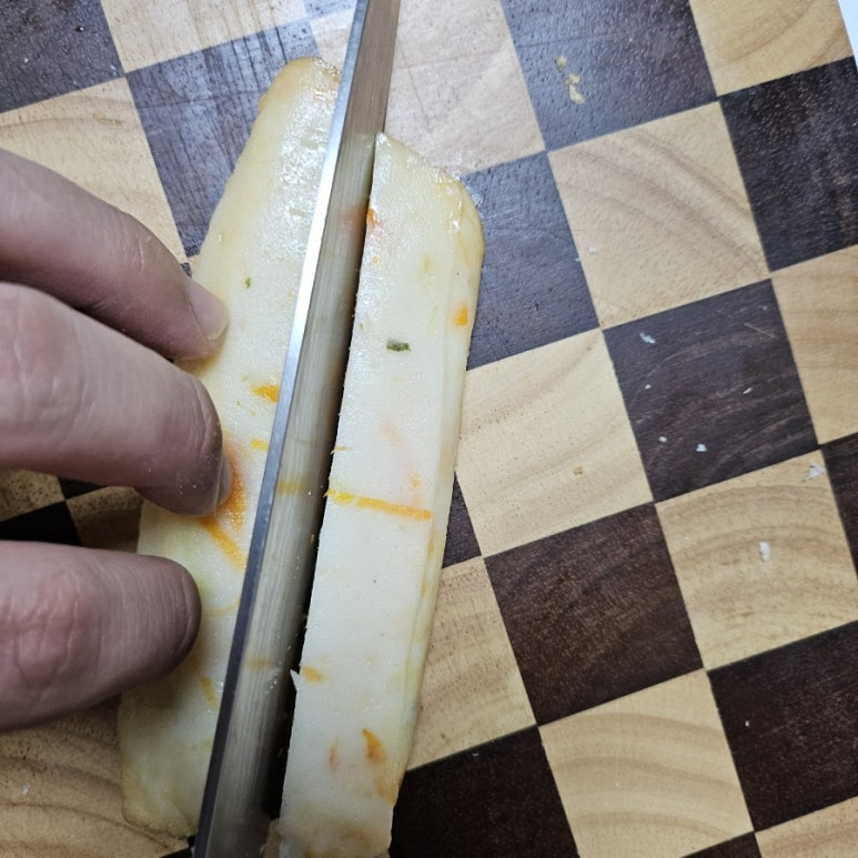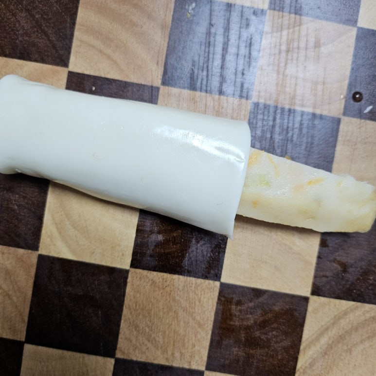손질한 어묵, 모짜렐라 치즈 2장, 체다치즈 2장, 식빵 2장