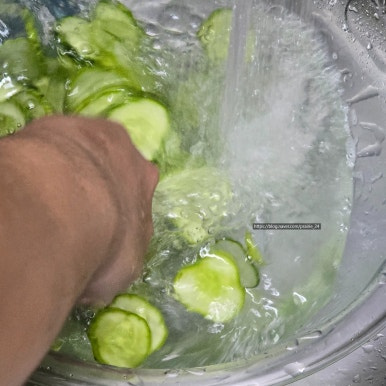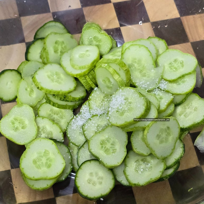 이 과정에서 오이의 수분을 조절 할 수 있어요 저는 꼬들한 식감을 위해서 꼬들해질 때까지 수분을 빼줄게요!