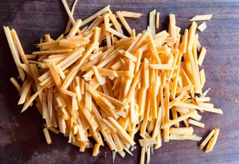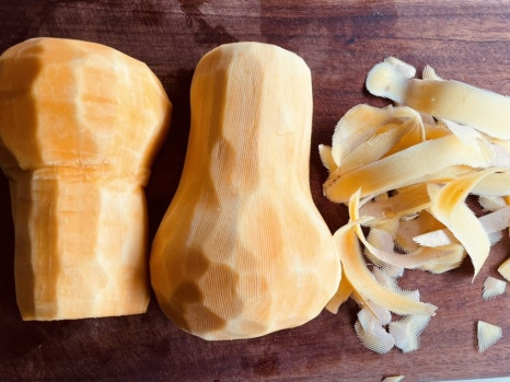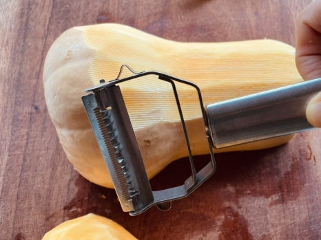 호박의 겉껍질을 감자 채칼이나 일반 칼로 벗겨 주세요.