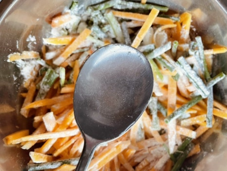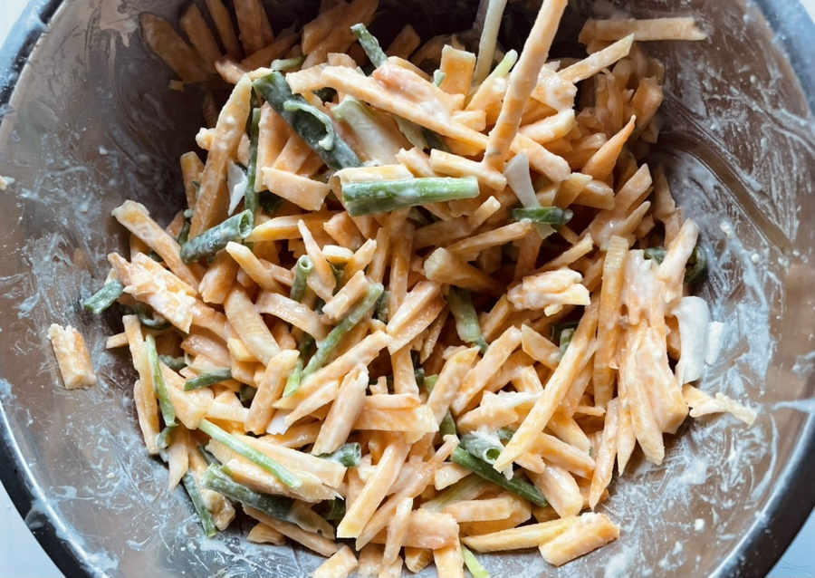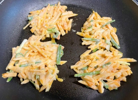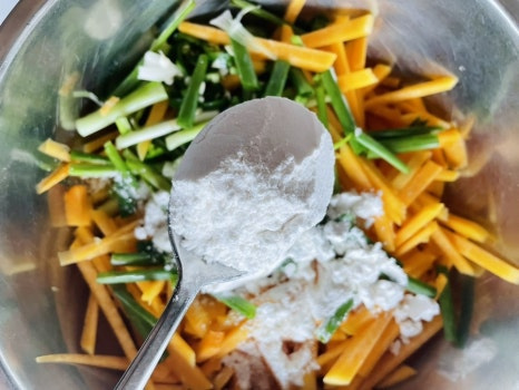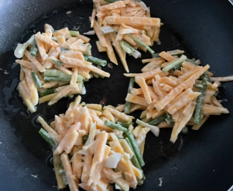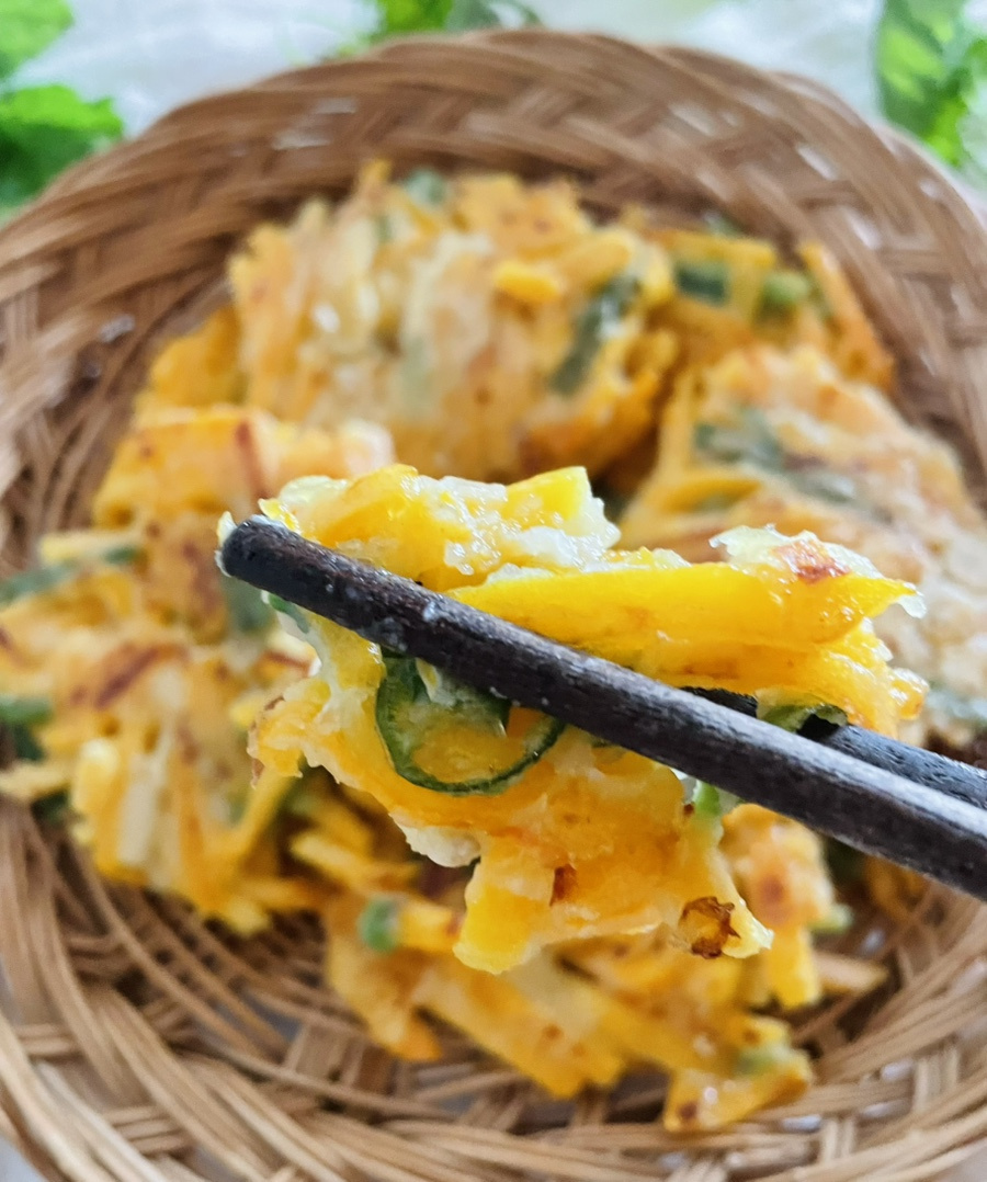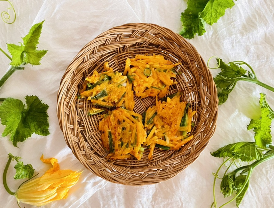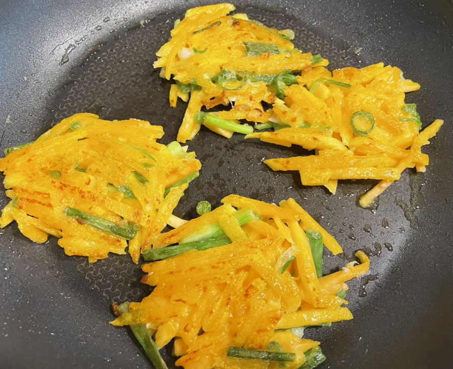 늙은 호박전을 만들듯이 호박을 채썰어서 부침가루와 찹쌀가루 섞어 전을 부쳤더니 땅콩호박의 달큰한 맛과 버터같은 맛도 나고 찹쌀의 쫀득한 맛이 잘 어울리더라구요.