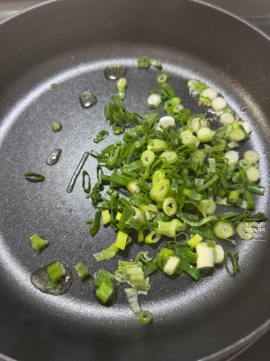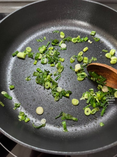 달군 팬에 식용유 2큰술 가량 두르고 파 넣고 노릇하게 볶아줍니다.