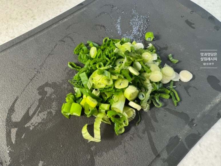 파기름 내줄 파 반 대 가량 송송 썰어줍니다.