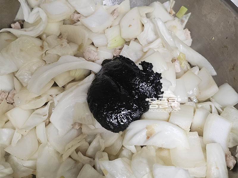 춘장을 볶으면 짠맛은 줄고 고소한 풍미가 극대화. 타지 않도록 불 조절은 필수!
