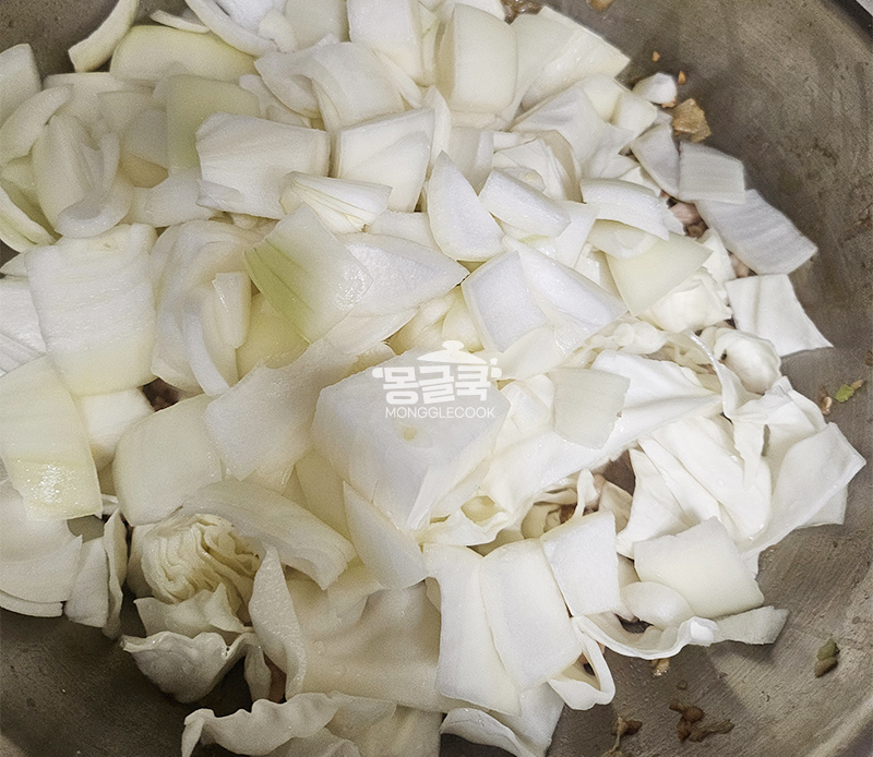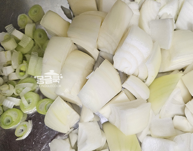 간짜장은 물을 넣지 않고 야채에서 나오는 수분으로만 조리해야 맛있어요.