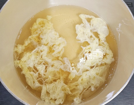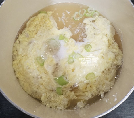 그래야 계란이 몽글몽글하게 익어 국물이 탁해지지 않고, 부드러운 계란 덩어리가 살아나요.