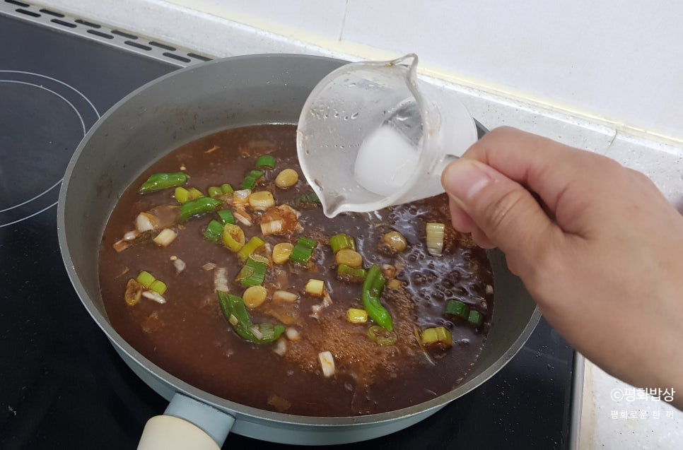전분물을 천천히 부어준다.