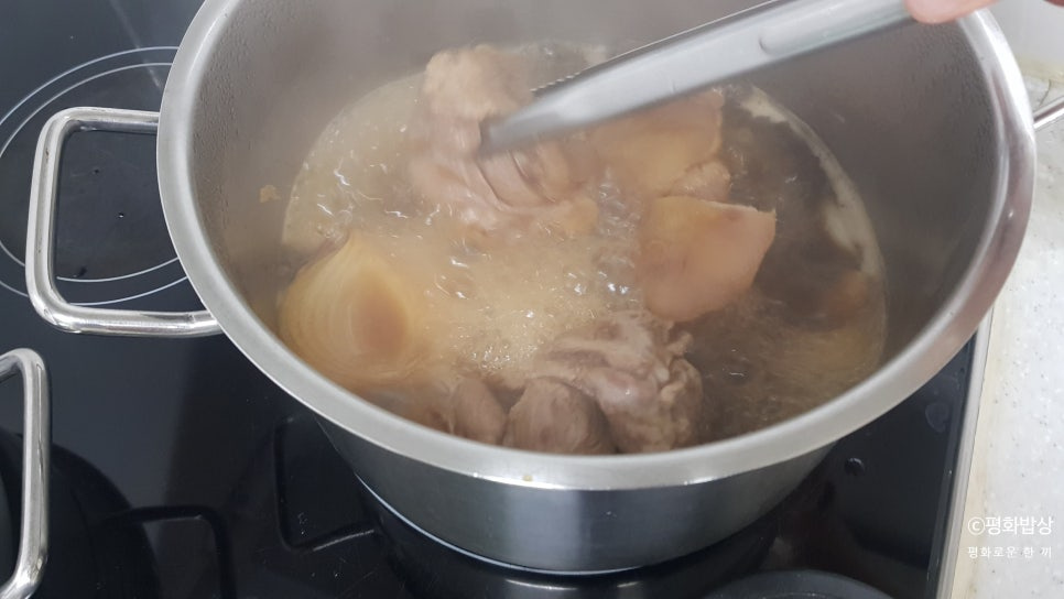 핏물을 빼기 위해 찬물에 담가서 요리를 하는데