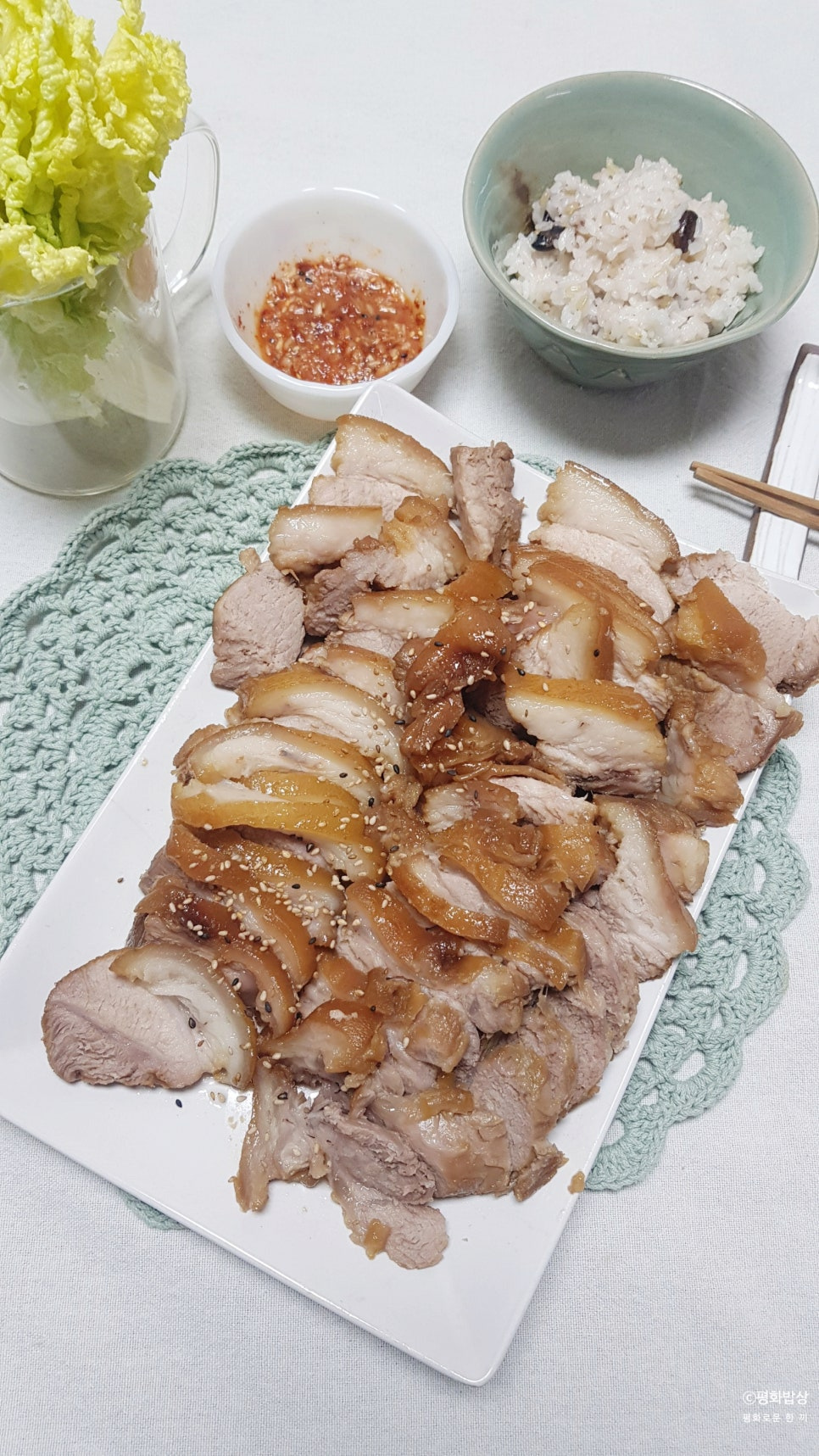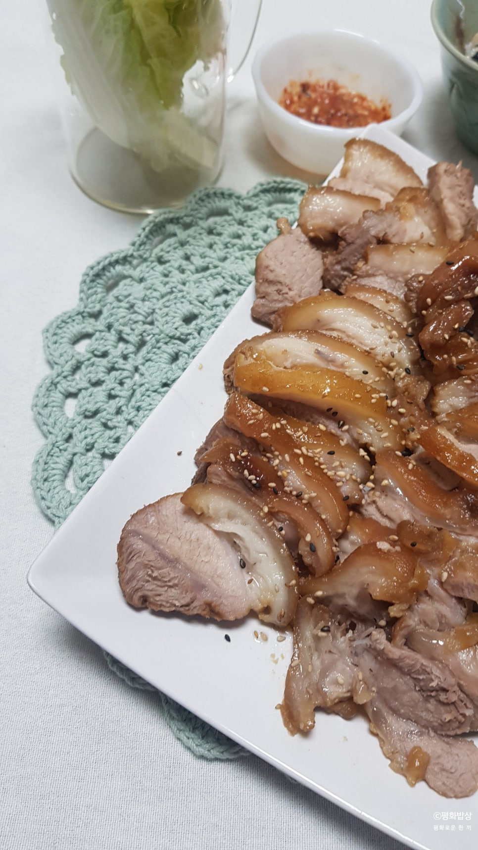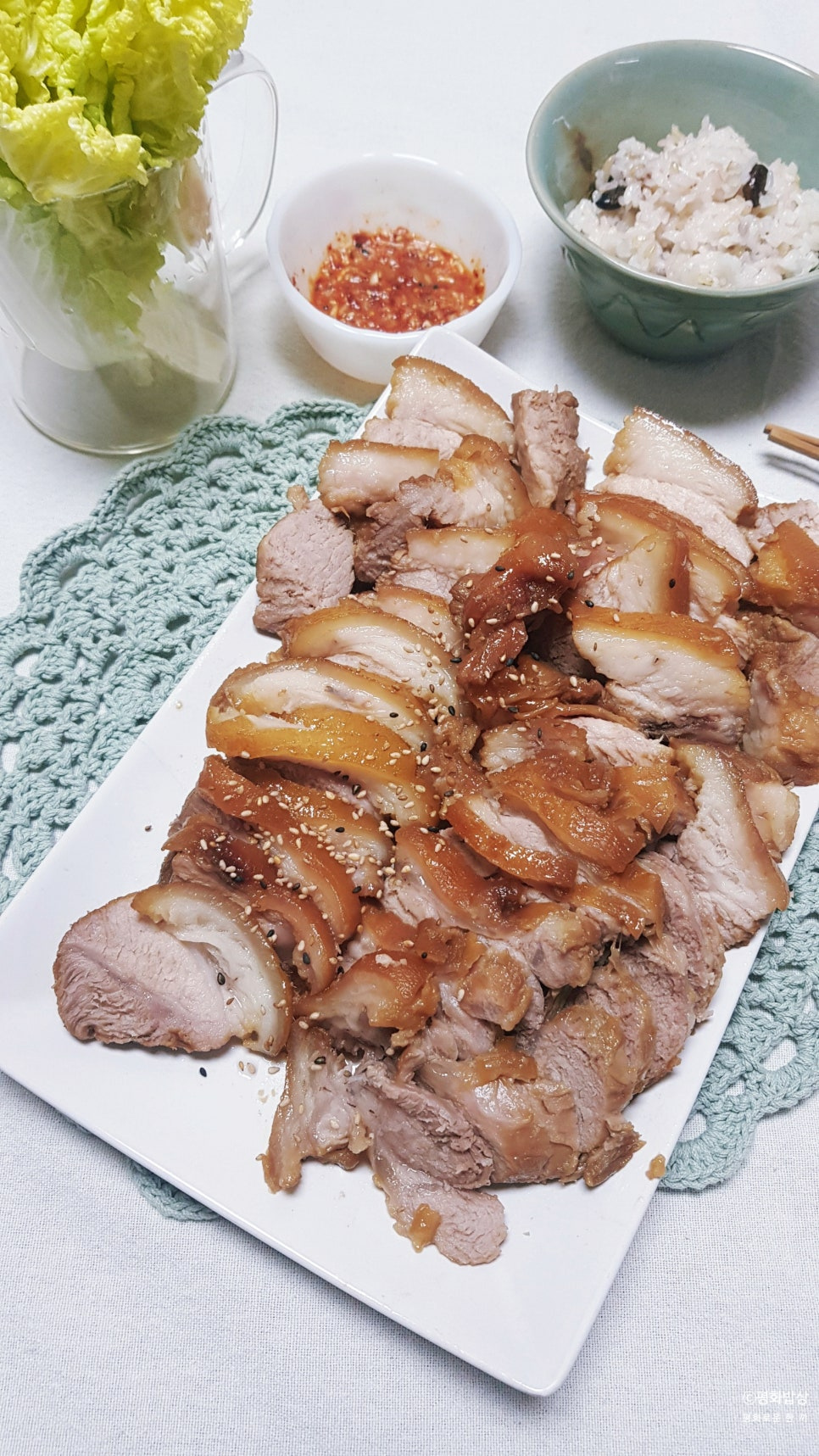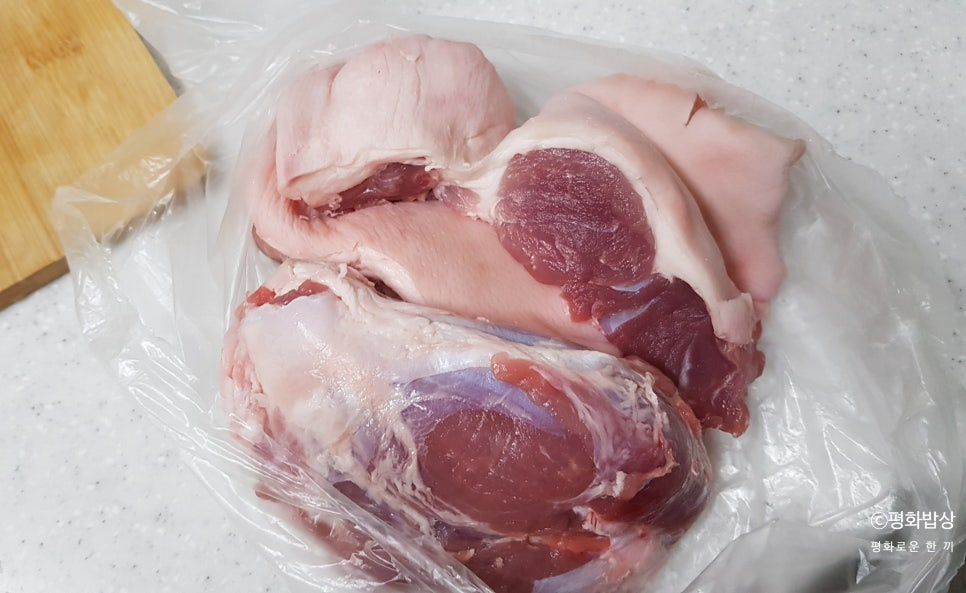 앞다리살보다 탱탱한 껍질부분이 붙어있다.