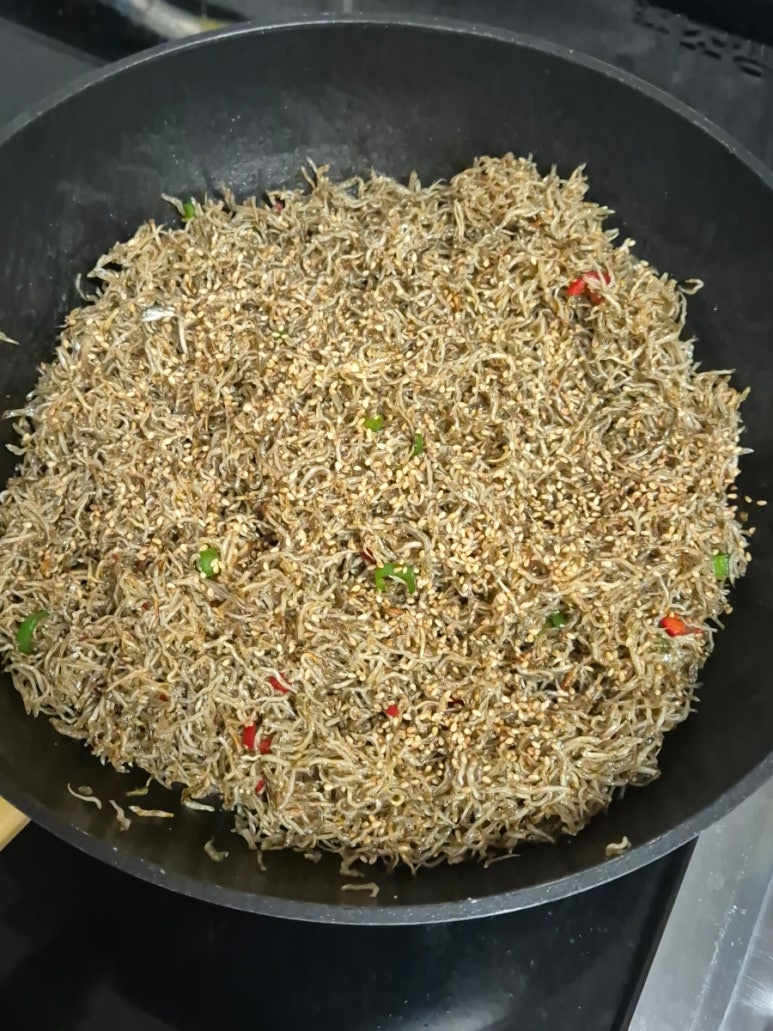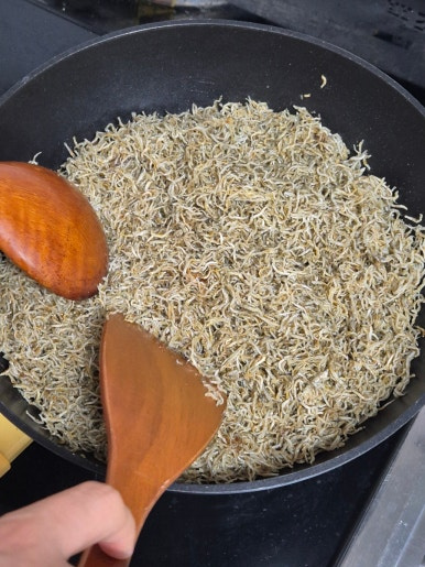 타닥타닥 소리가 나면 그때부터 2~3분 정도 더 볶아주세요.