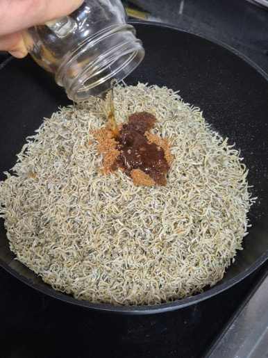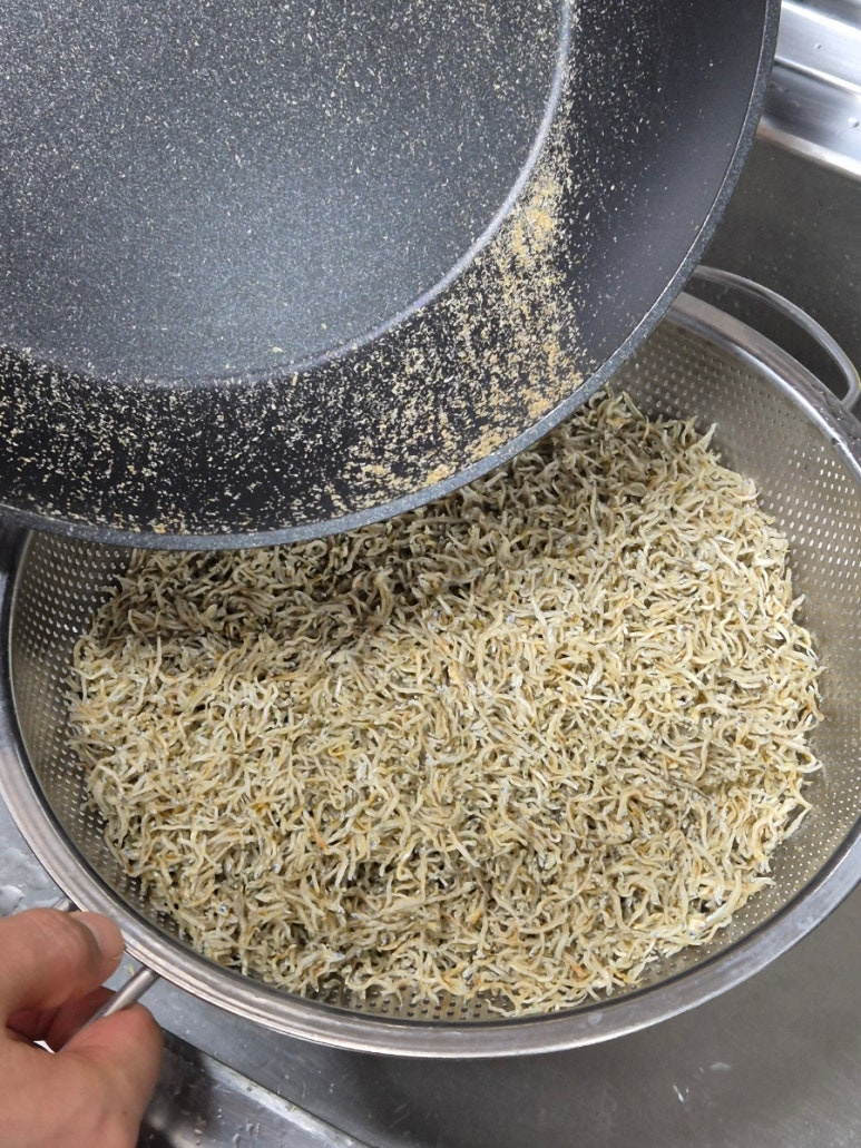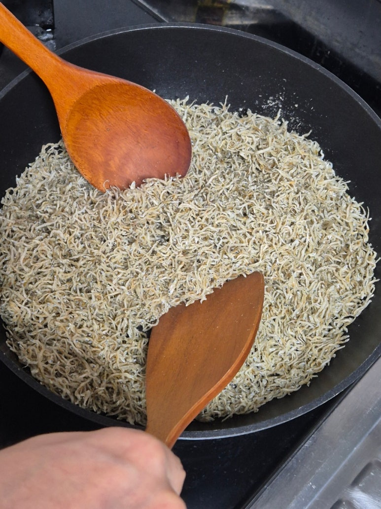 어머니한테 배운건데 미림을 넣으면 멸치 비린내를 날릴 수 있어요. 감칠맛만 남는답니다.