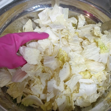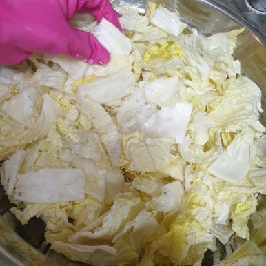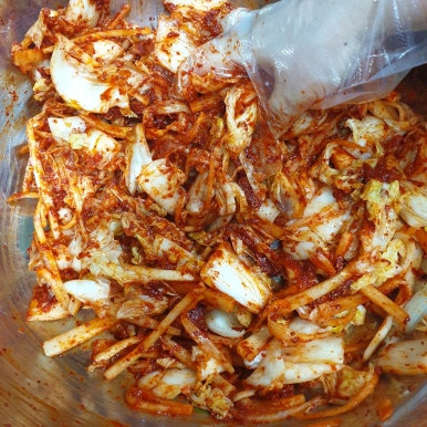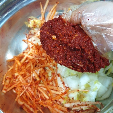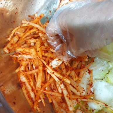 김치를 버무릴 때는 살살 살살 버무리고