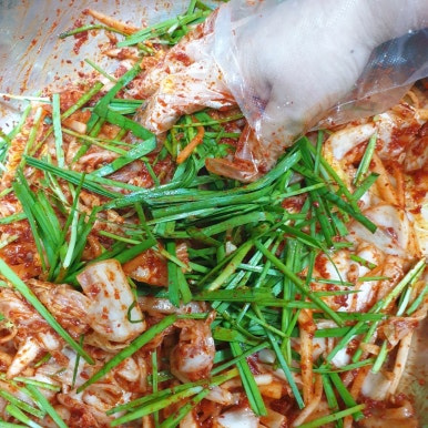 부추를 넣어서 한 번 더 버무리세요