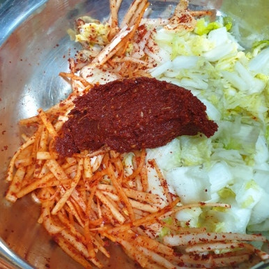 무를 채 썰어서 더 넣어서 버무리세요