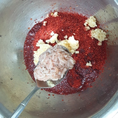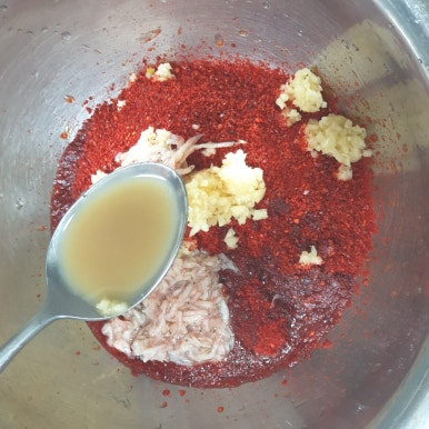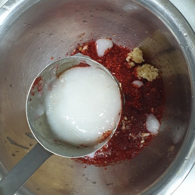 멸치액젓 1/4컵과 찹쌀죽 1/3컵을