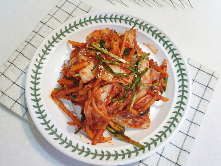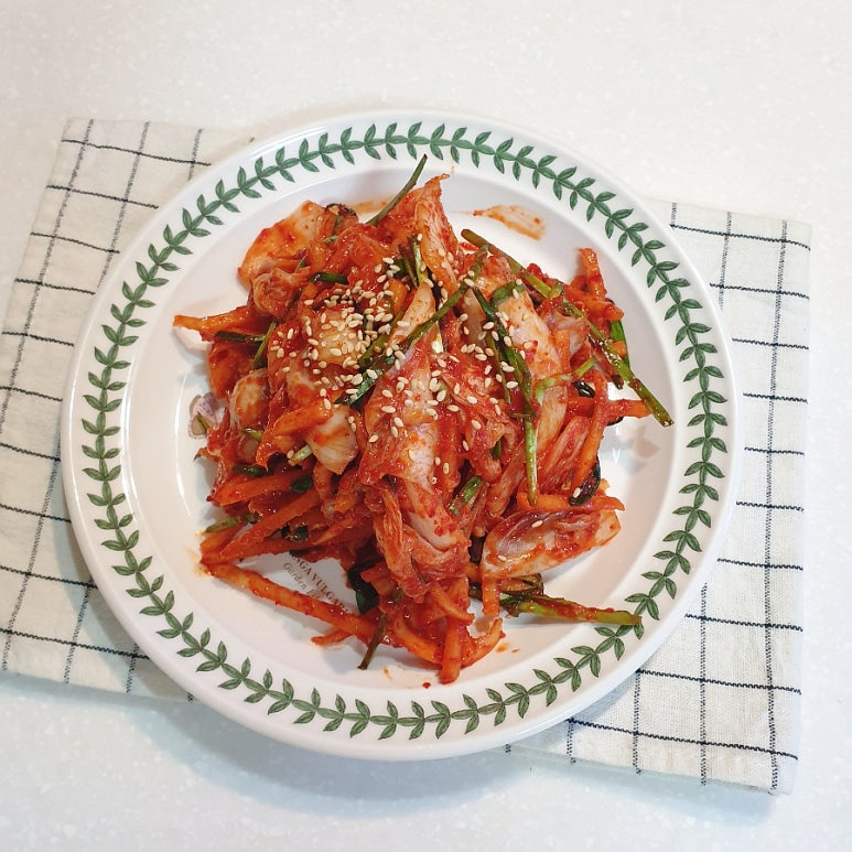 배추 한 포기로 만든 맛김치가 완성되었어요