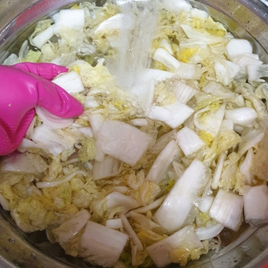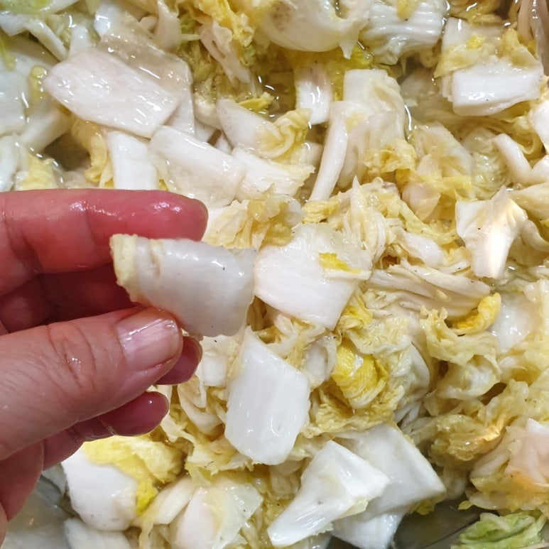 짠 김치가 덜 짜게 됩니다.
