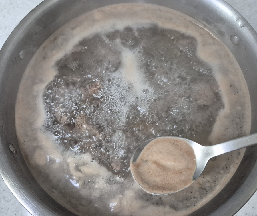 거품을 걷어내지 않으면 국물이 탁하고 어두워지면서 고기 특유의 잡내가 날 수 있어요.