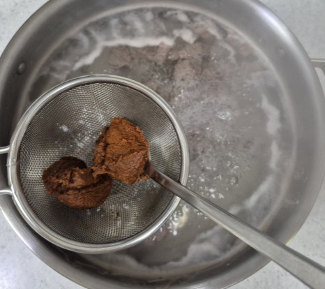 된장을 그냥 넣는 것보다 국물이 한층 깔끔해집니다.
