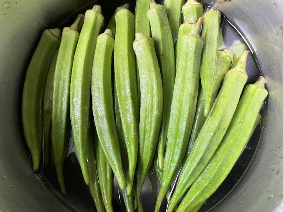 오크라는 식초 2큰술 정도 탄 물에 10분 정도 담갔다가 씻어 주세요.