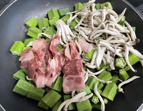 오크라 자체만 조려도 맛있지만 삼겹살이나 차돌박이랑 같이 조리면 더 맛있더라구요.