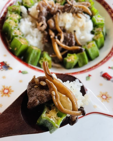 많은 오크라를 요리하기에도 좋고 밥 위에 얹어 계란 후라이나 낫또랑 같이 비벼 먹으면 오크라 덮밥으로 넘 맛있어요.