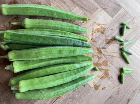 오크라 한박스를 주문해서 생으로 오이랑 무쳐 먹기도 하고 데쳐서 양념 간장에 찍어 먹기도 하고 솥밥에 넣어 먹기도 하고 열심히 요리해 먹고 있어요.