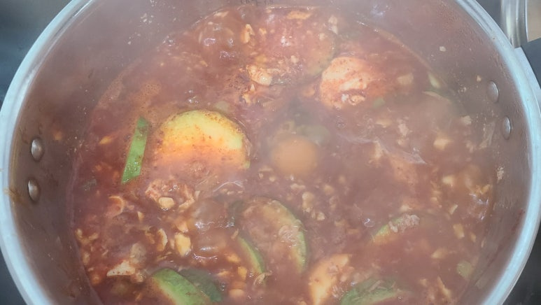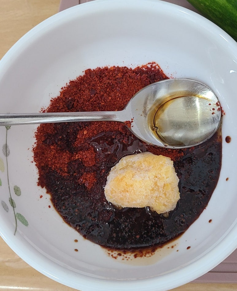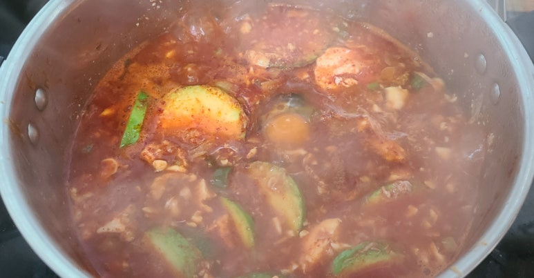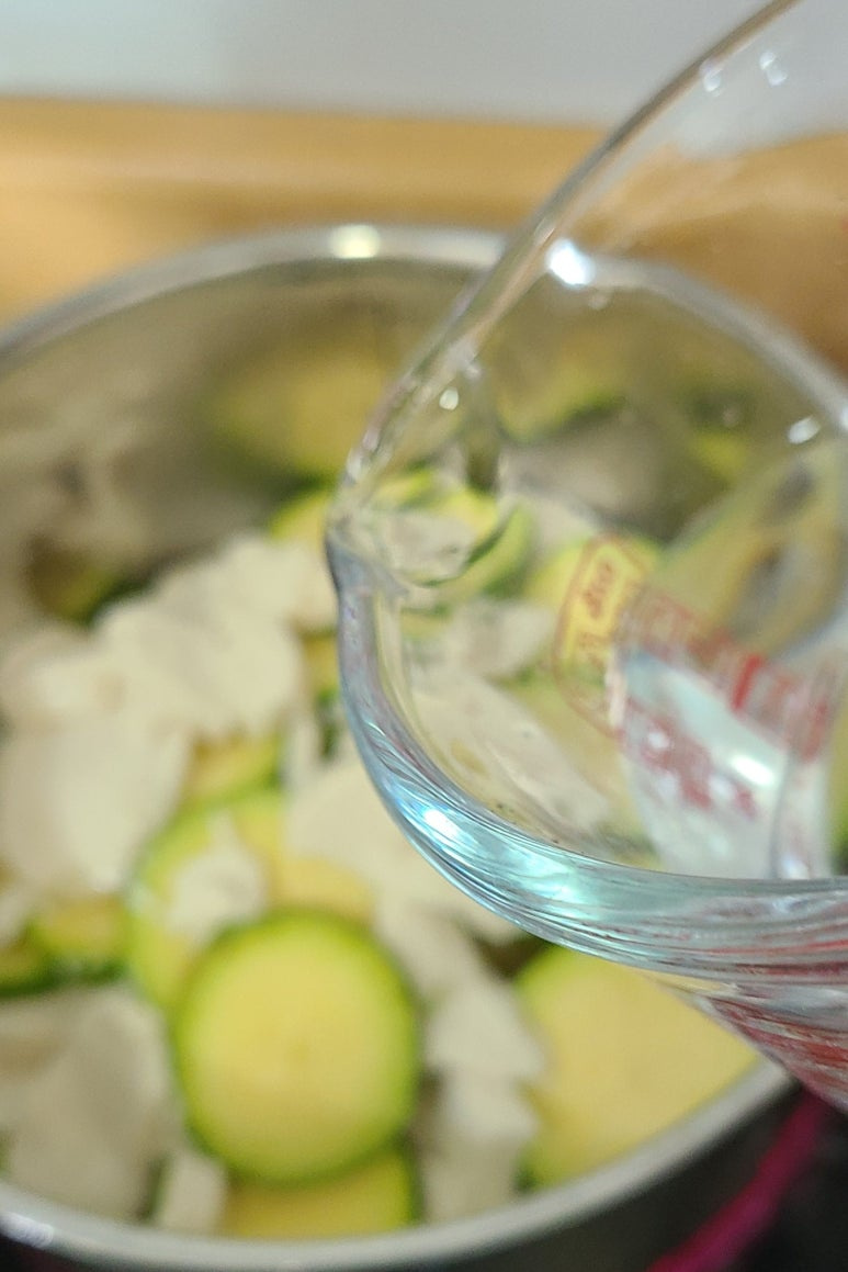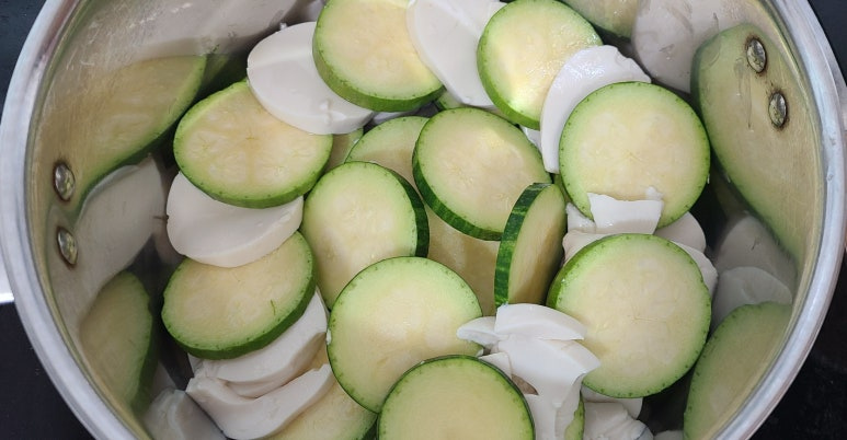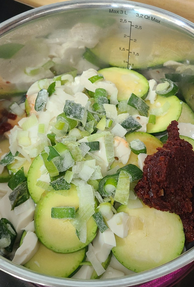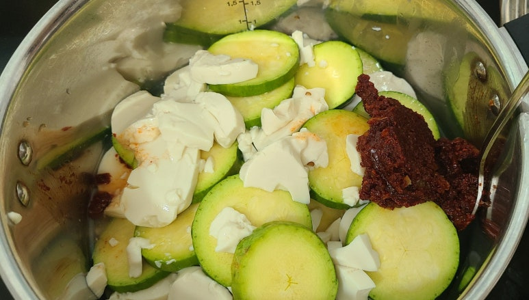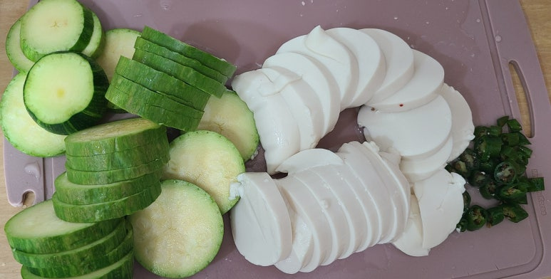 애호박 1개, 순두부 1봉, 청양고추 2개.