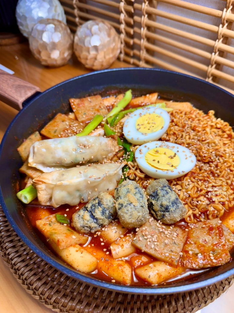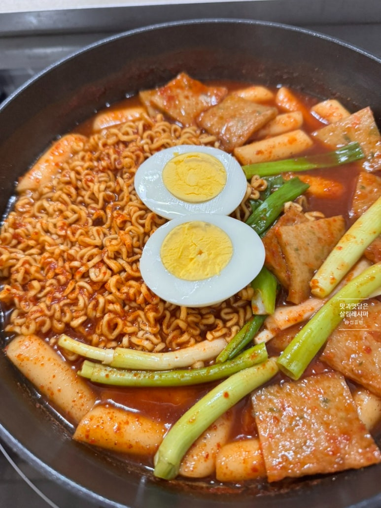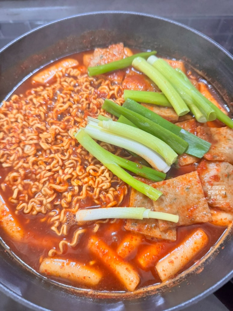 떡과 함께 라면사리 푸짐하게 넣어 넉넉한 국물로 인해 라볶이와 같이도 만들 수 있었고요. 에어프라이어에 후다닥 구워 낼 수 있는 추가 분식 메뉴로 김말이, 군만두 등도 준비하면 국물에 콕콕 찍어 먹는 맛 최고입니다.