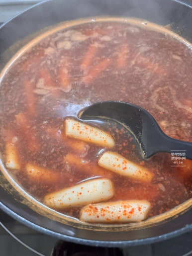 떡 먼저 넣어 말랑해질 정도로 3~4분간 끓여줍니다.