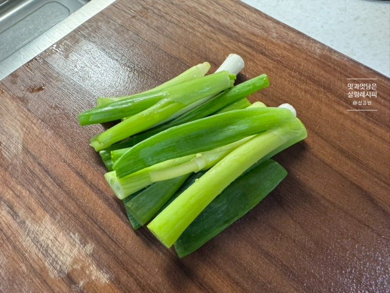 대파도 큼지막하게 한 대 넉넉하게 준비해요. 대파 많이 넣는 것을 좋아해서 늘 한 대 정도 넣어주고 있어요.