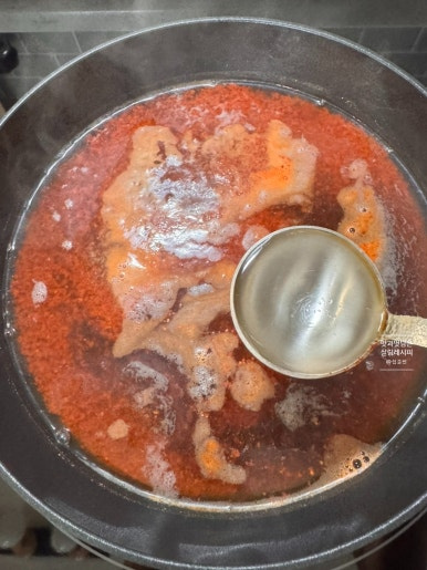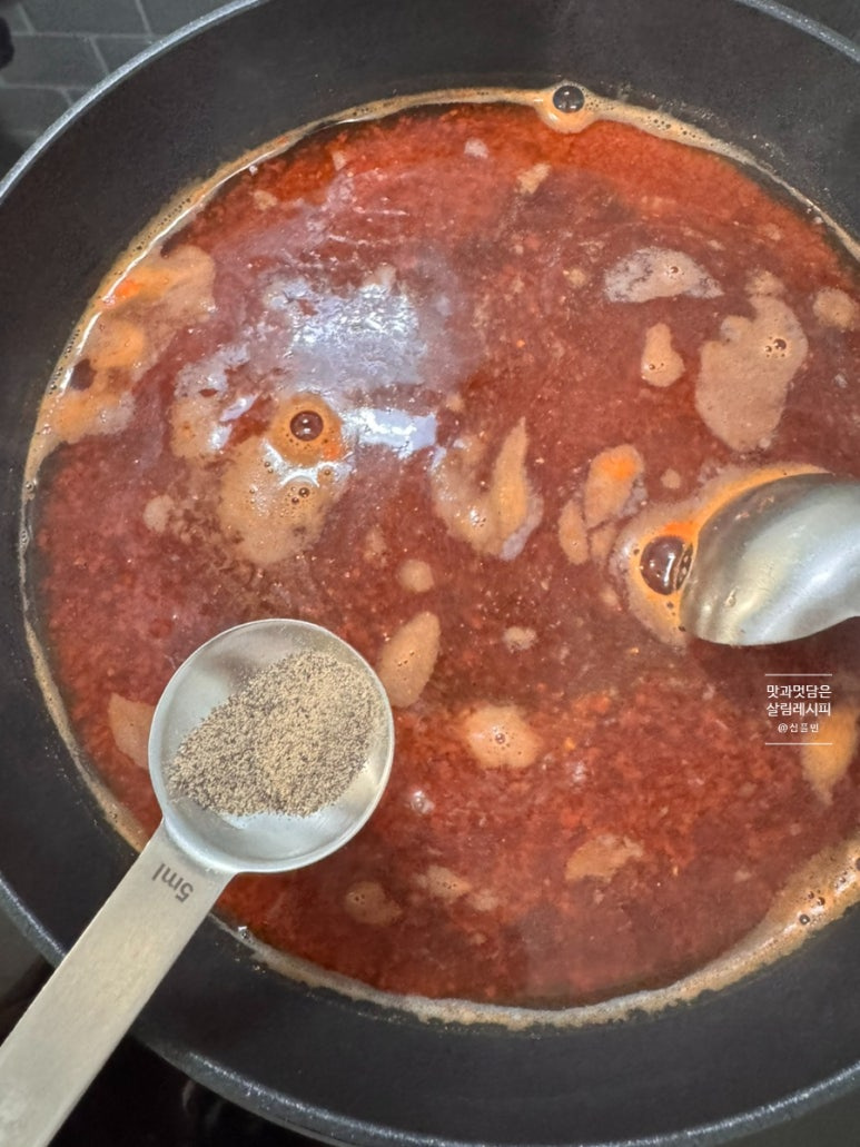 위 분량의 양념 재료를 넣고 가볍게 끓여가면서 고루 섞어줍니다.