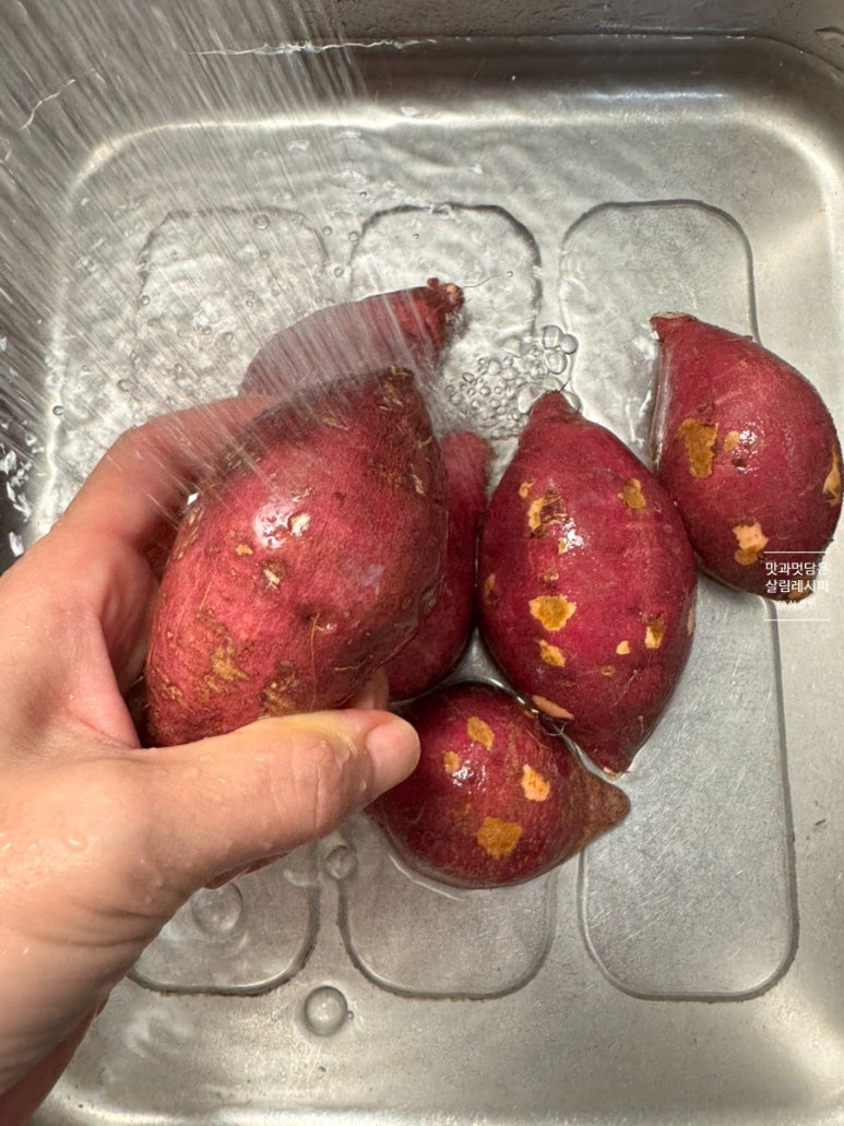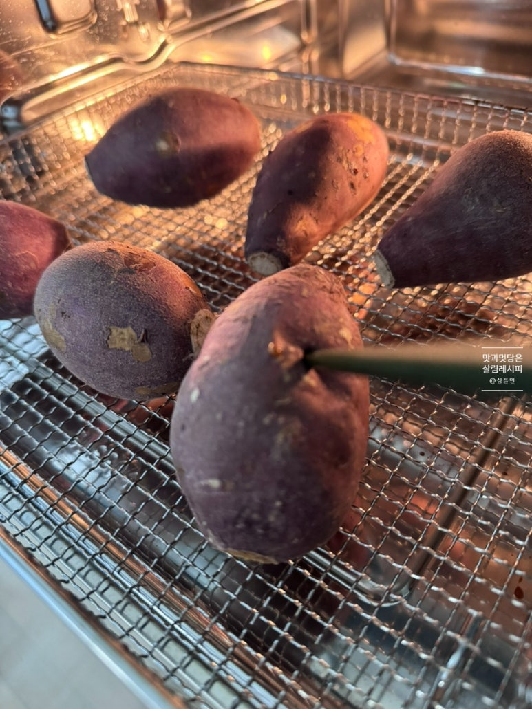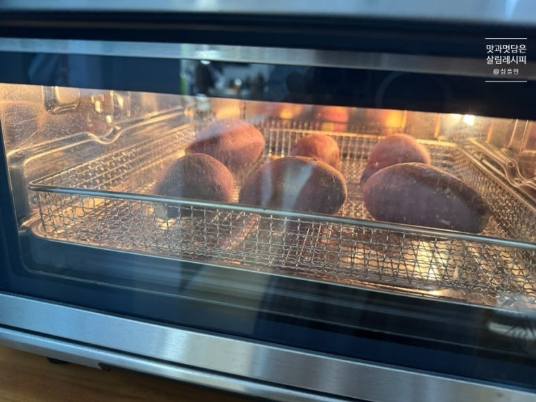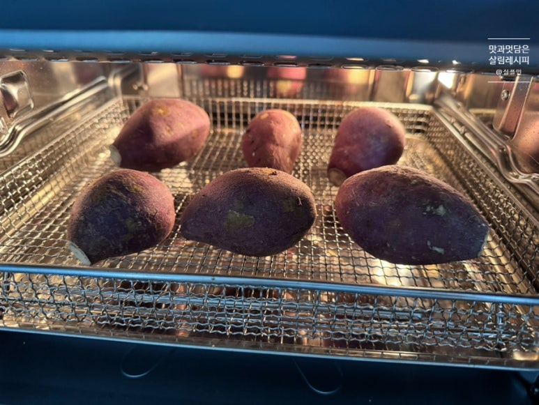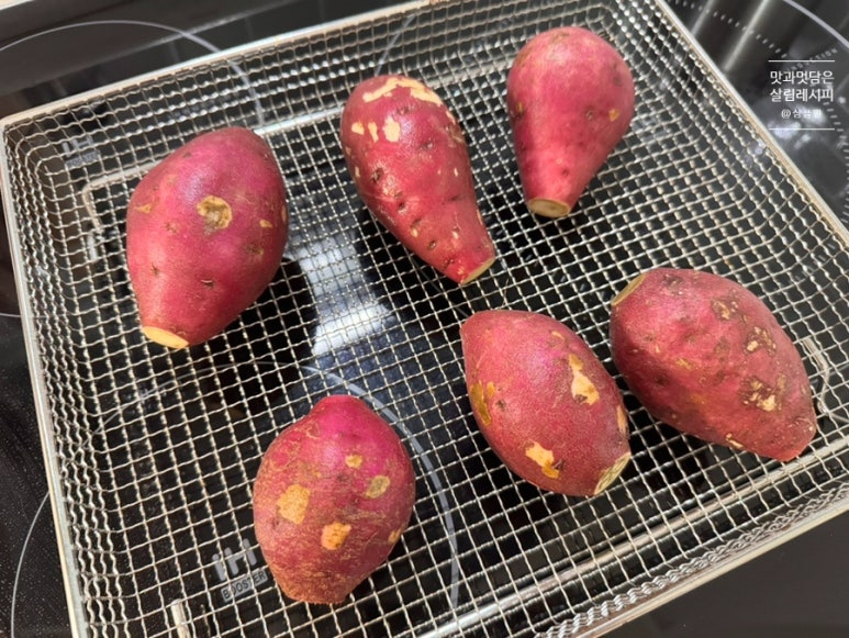 온도와 시간만 맞춰 에어프라이어에 넣고 돌려주면 뚝딱 완성되기 때문에 물 넣고 찌는 방식보다 오히려 더 간단하기도 해요. 또한 고온에 굽는 과정에서 찌거나 삶는 것보다 단맛도 훨씬 상승되어 맛까지 좋습니다.