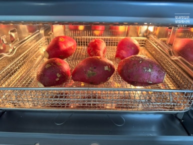 1차로는 너무 높지 않은 온도에서 구워줍니다. 이 온도에서 은근하게 구워주다가 2차로 고열로 구워주면 높은 온도에서 약한 효소가 전분을 분해하면서 전분을 당으로 변화시켜 단맛을 끌어올려 줍니다.