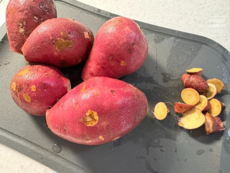 찐 뒤에 샐러드나 다른 간식으로 다시 만들 땐 추가 양념 재료들이 들어가기 때문에 다이어트용으로는 부담스럽기도 하지만 이렇게 굽기만 해도 자체만으로 맛있어지니 다이어트나 식단 관리용으로 제격인 간식 메뉴입니다.