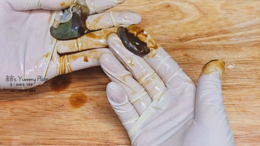 믹서기를 사용하지 못한다면 가위를 이용해 내장을 잘게 잘라 다져주셔도 된답니다~