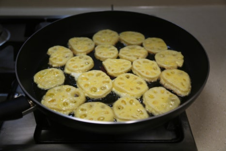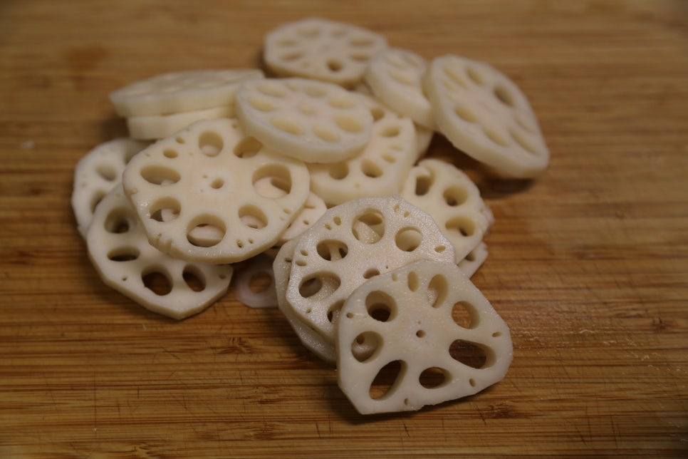 연근은 손질해서 썰어 판매하는 것도 있어 초보자는 그런 식품을 이용하면 되는 데 소금물에 살짝 데치는 과정은 꼭 해준다