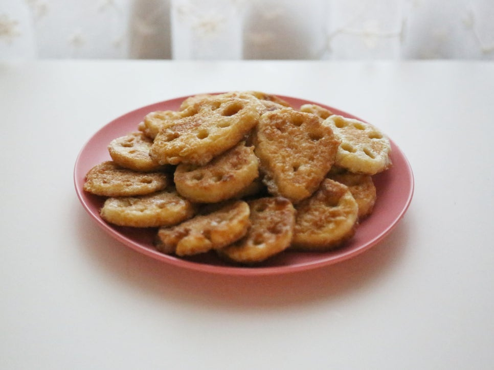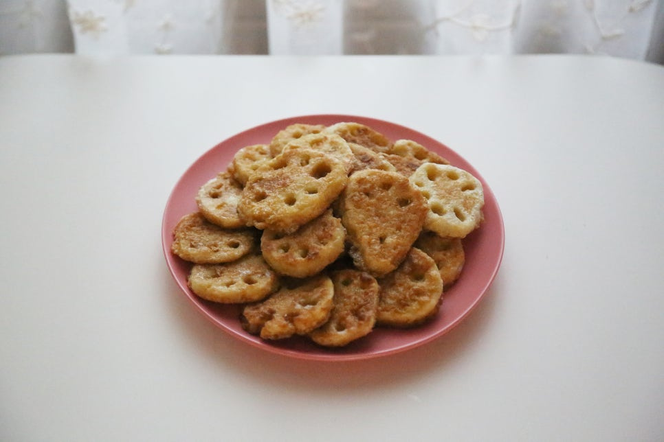 연근 15cm, 참치액 1스푼, 소금 2꼬집, 부침가루 2스푼
