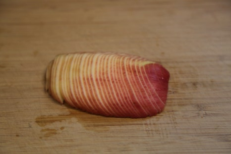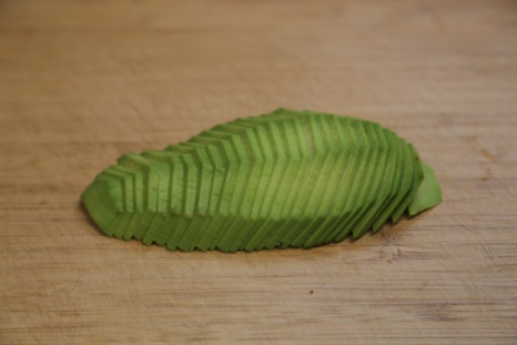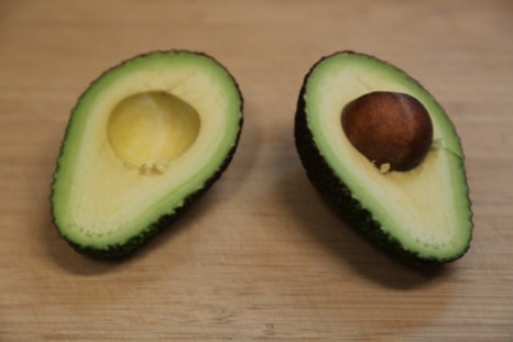 아보카도는 껍질채 칼집을 깊숙이 넣은 후 손으로 비틀면 반으로 나뉘어진다 껍질을 깐 후 썰면 된다