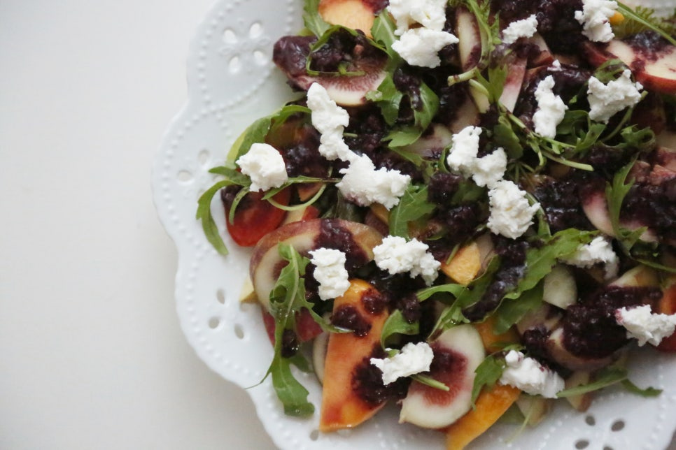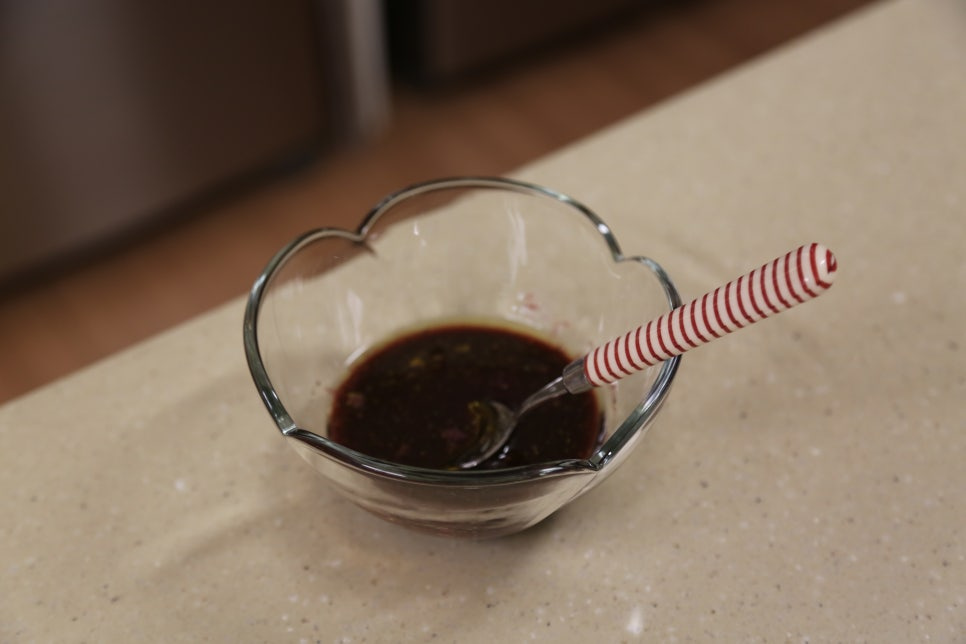 블루베리퓨레 3스푼, 올리브오일 3스푼, 화이트발사믹식초 3스푼, 소금 2꼬집, 후춧가루 약간