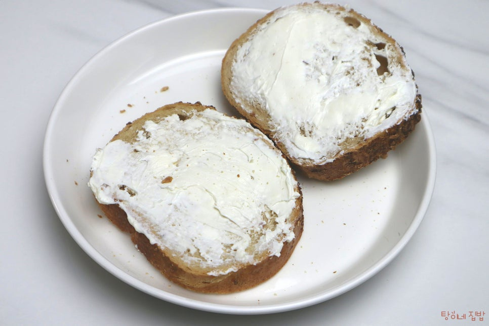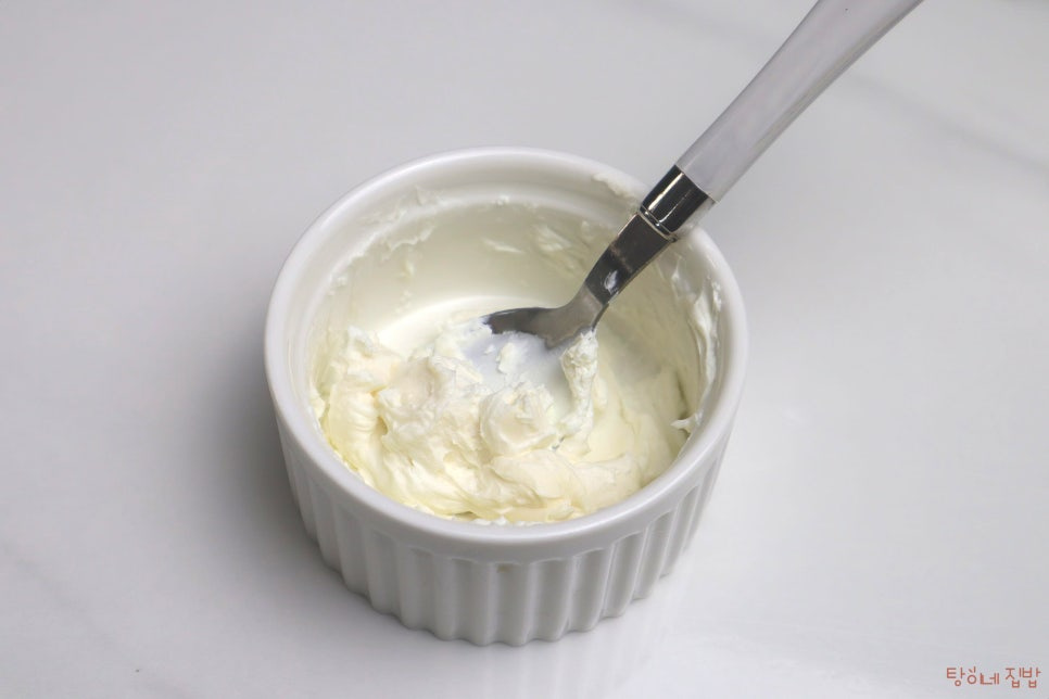 크림치즈의 진한 풍미와 그릭 요거트의 산뜻한 상큼함이 조화를 이뤄 줘요 기호에 따라 꿀 소량, 레몬 몇 방울 넣어도 좋아요. (딸기잼 넣는다면 꿀, 레몬즙 생략)