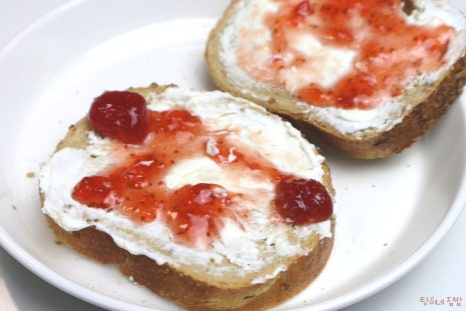 잼의 종류는 취향껏 선택해서 발라 주시면 돼요 유자, 블루베리 등등