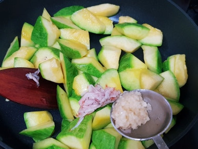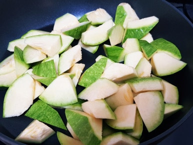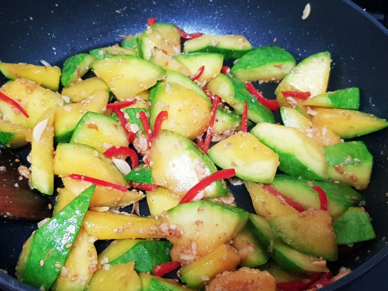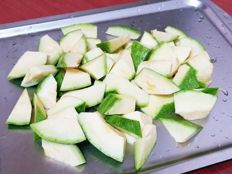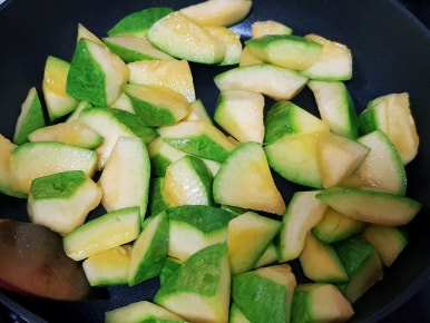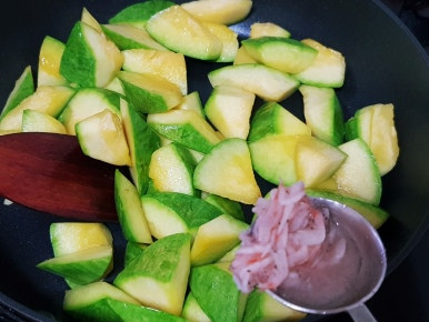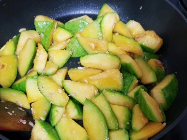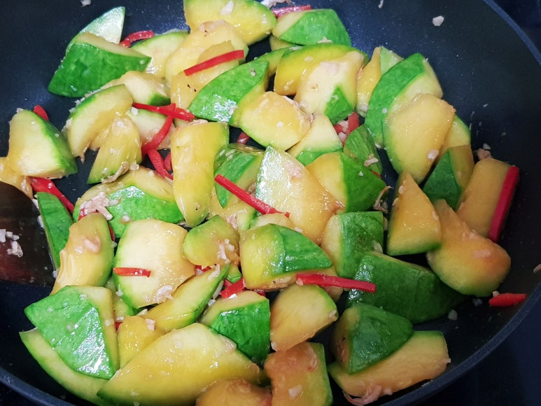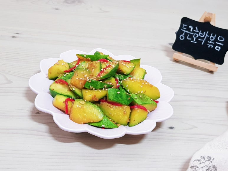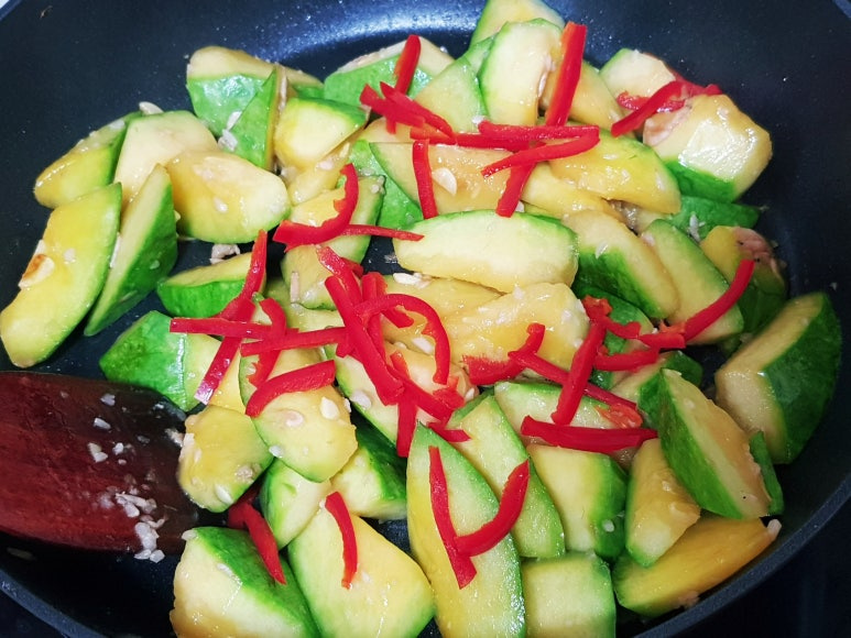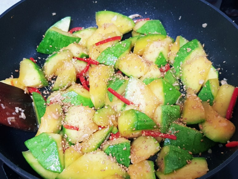 무르게 푹익은 호박볶음 좋아하면 물 약간 넣고 뚜껑 닫고 3분 정도 익혀 주면 됩니다