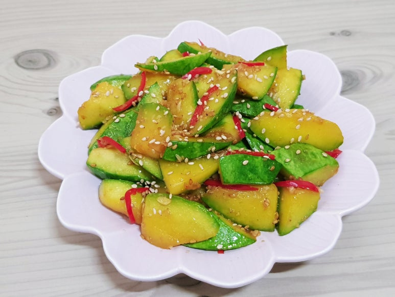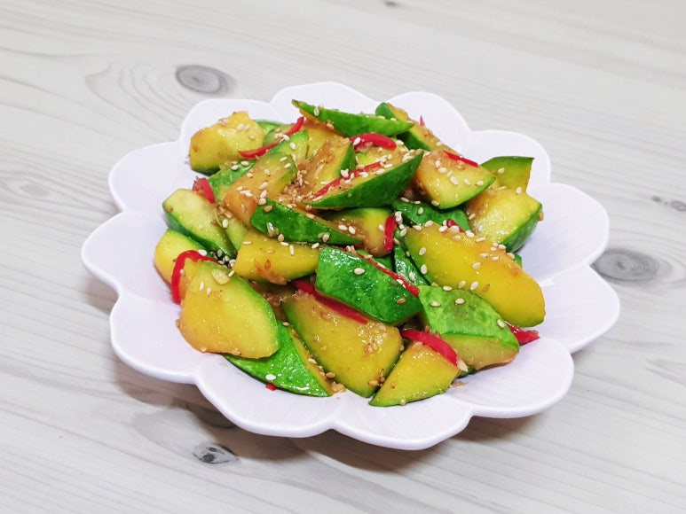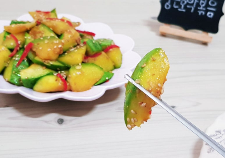 너무 얇게 썰면 부서져 식감도 물러져 맛이 없으니 조금 두껍게 써는게 좋더라구요~
