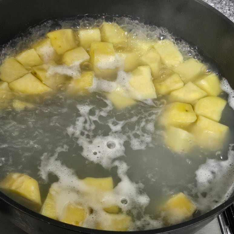 고구마는 껍질째 삶으면 영양소 손실이 적고 색도 선명하게 유지돼요