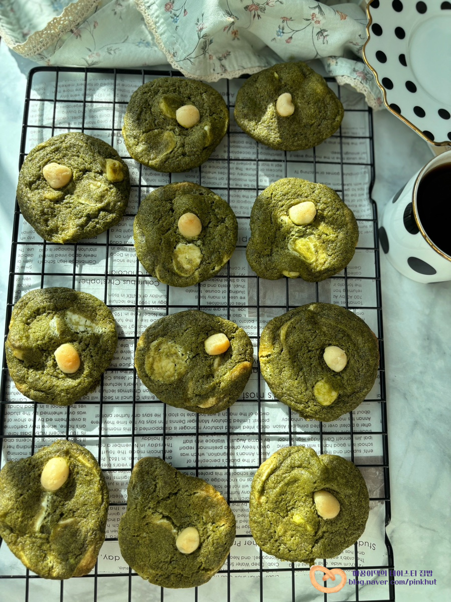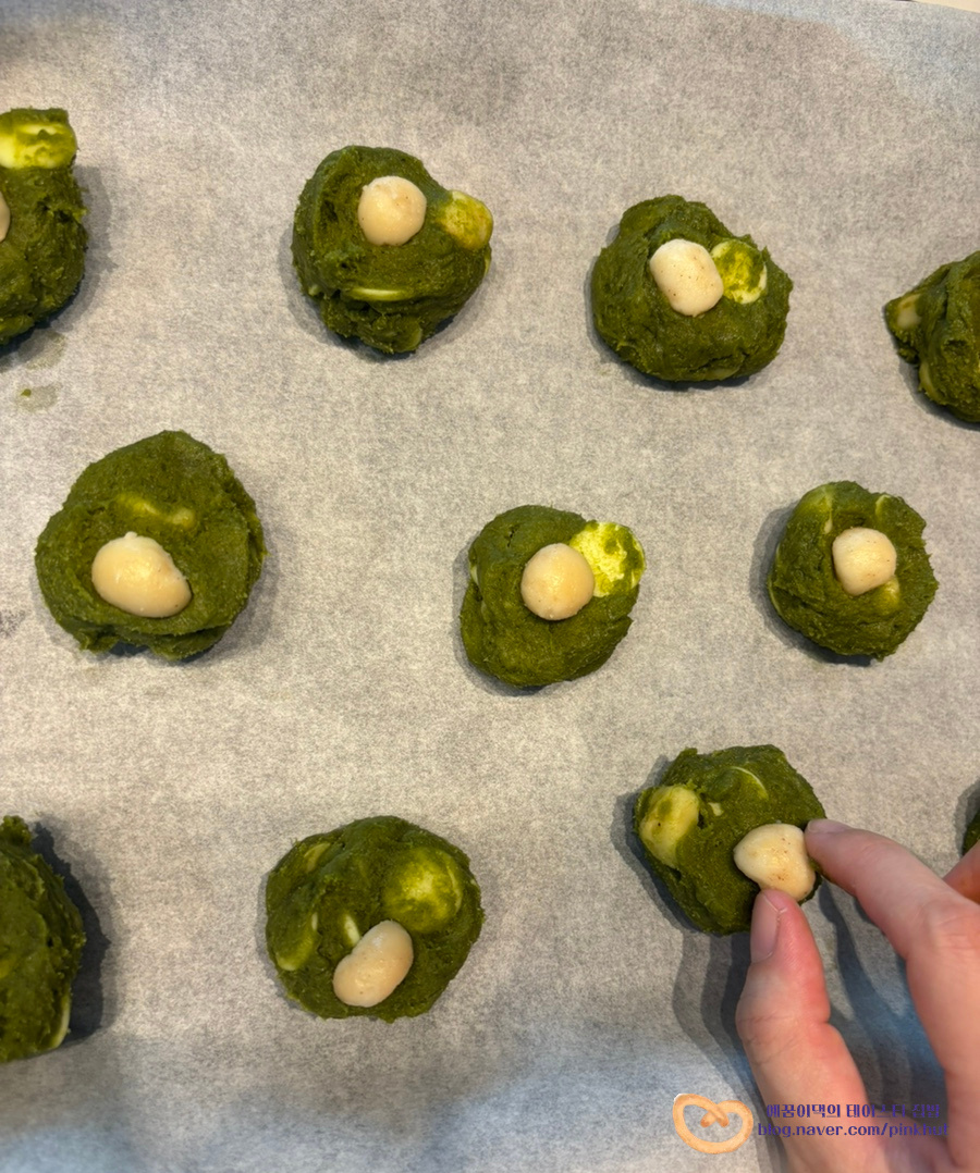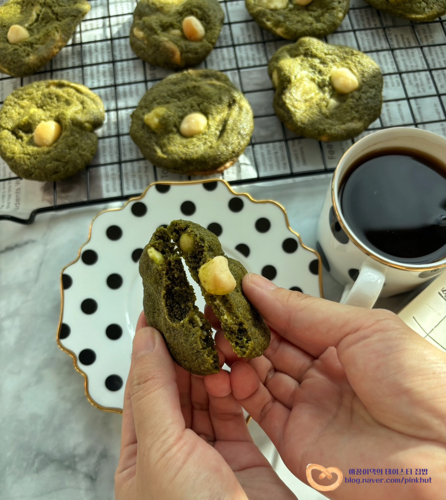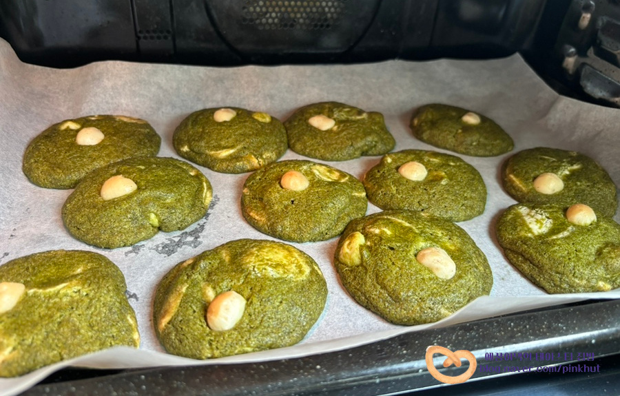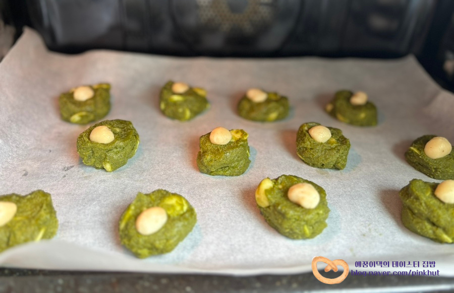 말차 화이트초코 마카다미아 쿠키 만들기 완성.