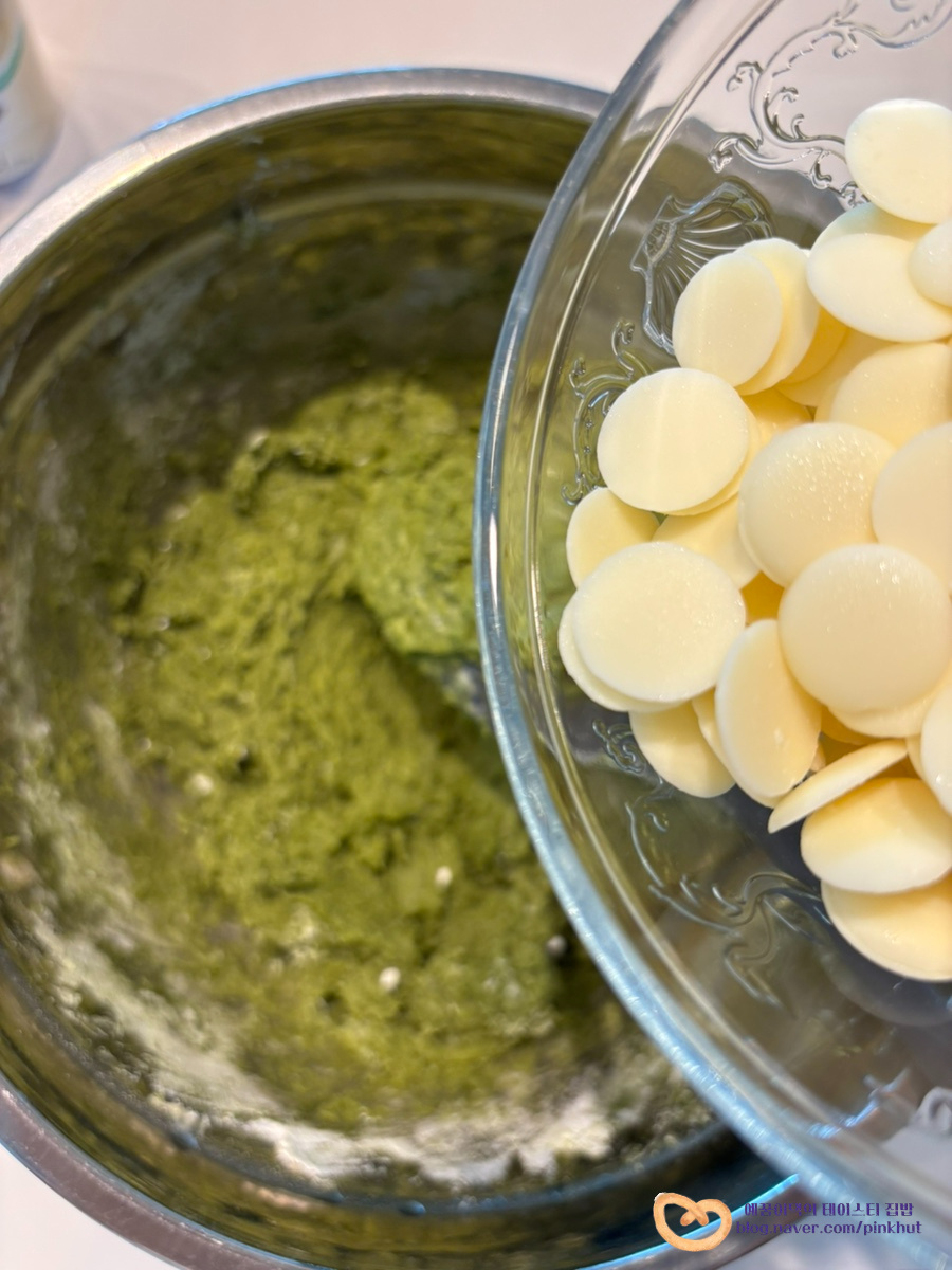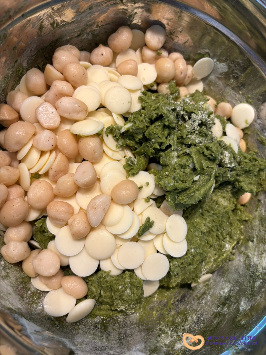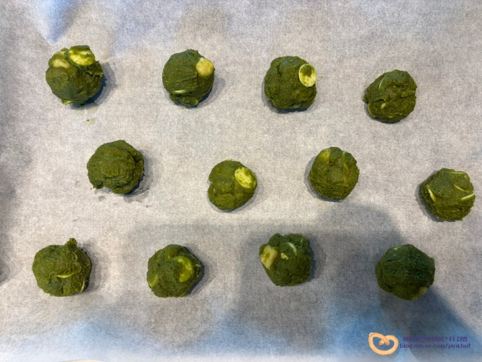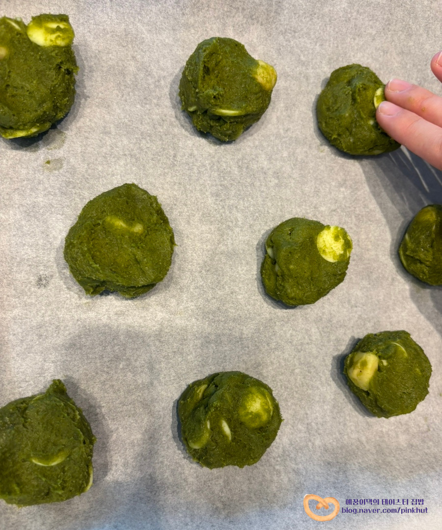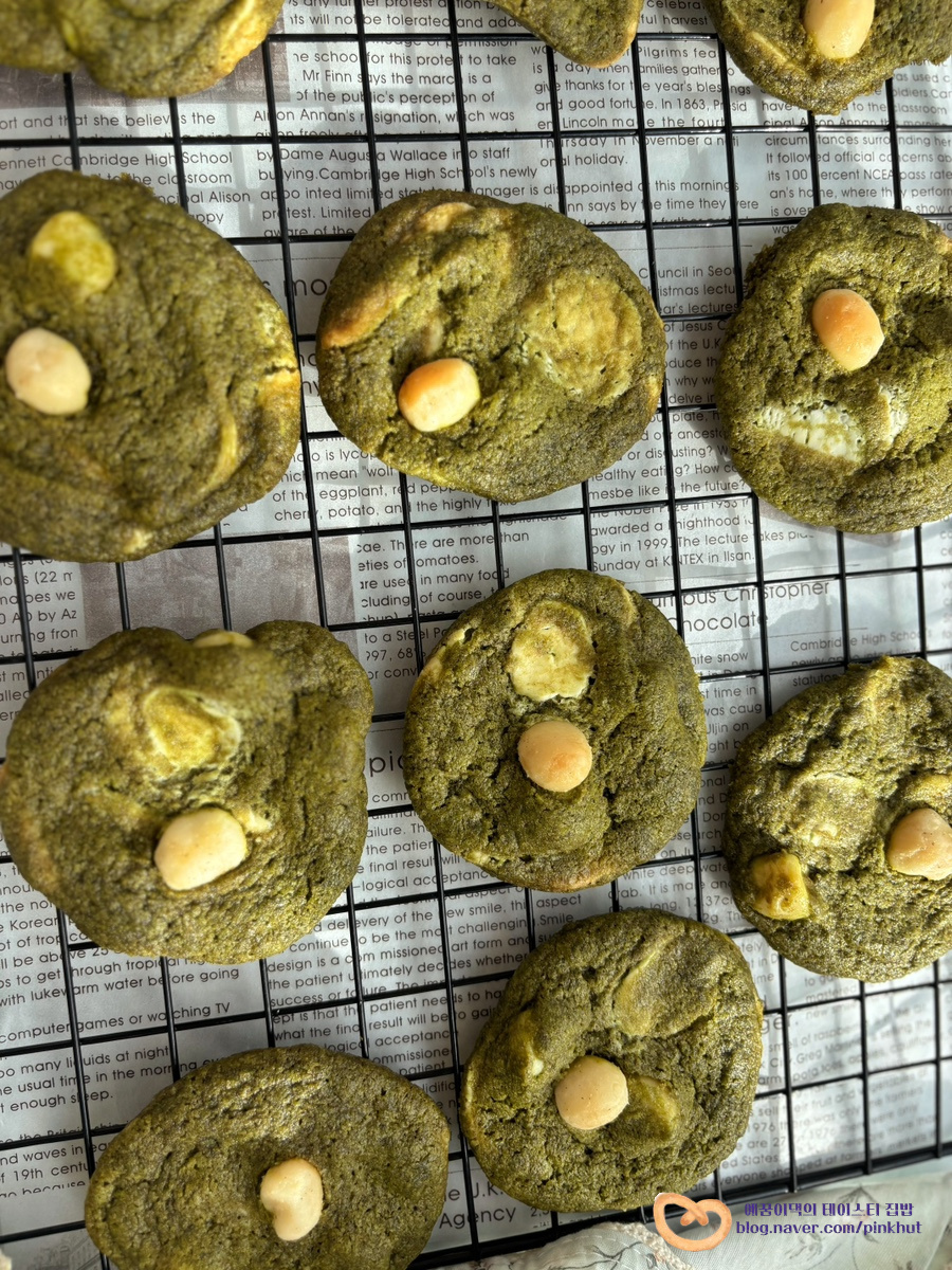 말차 화이트초코 마카다미아 쿠키 만들기 완성.